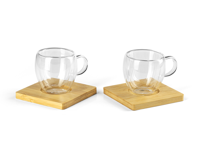 Čaša sa dvostrukim zidom i poklopcem od bambusa, 350 ml