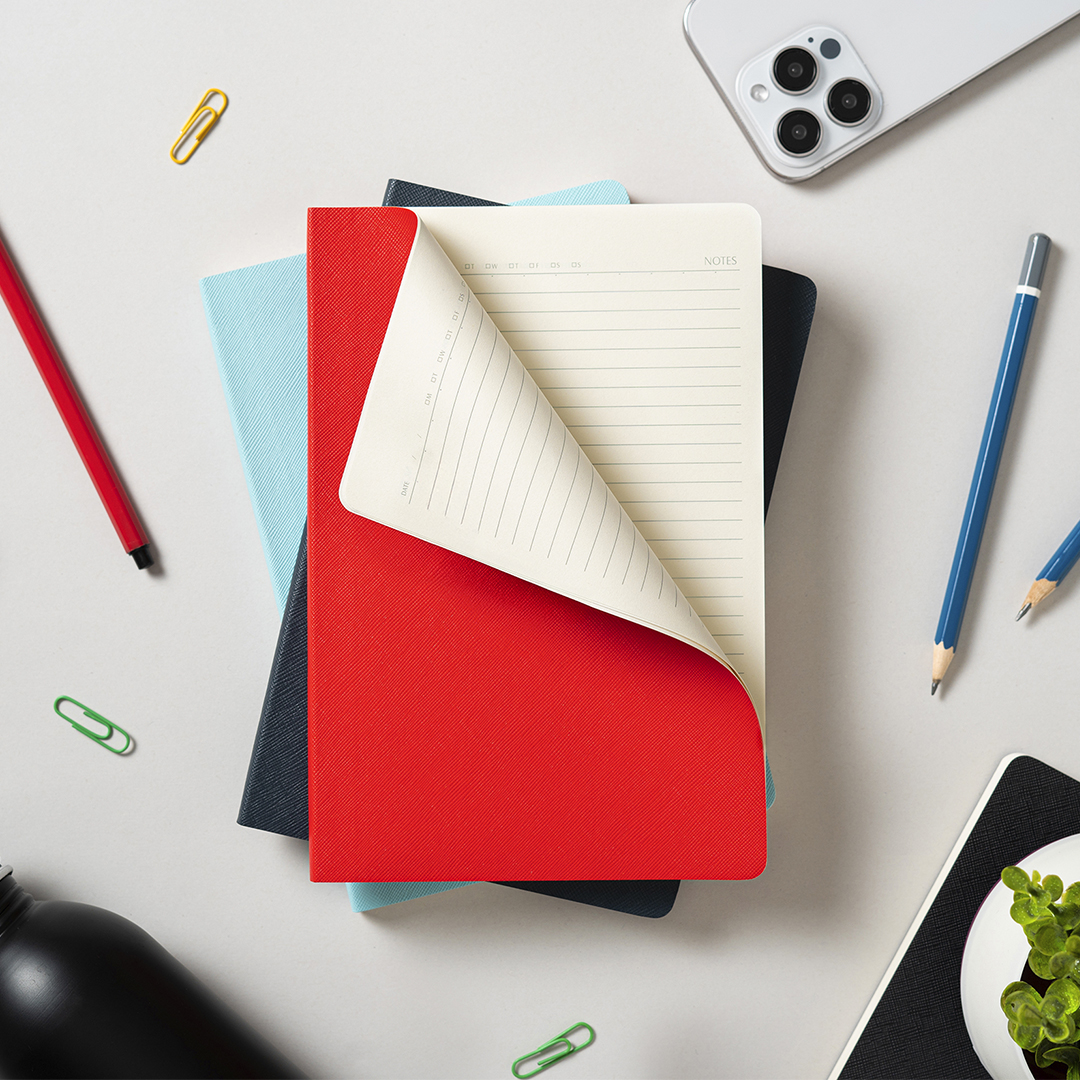 Notes formata A5 sa fleksibilnom koricom i zaobljenim ivicama, namenjen promotivnim projektima koji zahtevaju lagan i praktičan format. Savitljiva korica omogućavaju jednostavno nošenje, dok konac za šivenje rikne u boji korice daje diskretan dizajnerski detalj. Knjižni blok u linije sa 96 strana krem papira gramature 80 g/m² pogodan je za kraće beleške, sastanke i događaje. Ključne karakteristike: Notes • Format A5 • 96 strana • Knjižni blok u linije • Krem papir 80 g/m² • Fleksibilna Korica • Savitljiva korica • Zaobljene ivice • Konac za šivenje rikne u boji korice